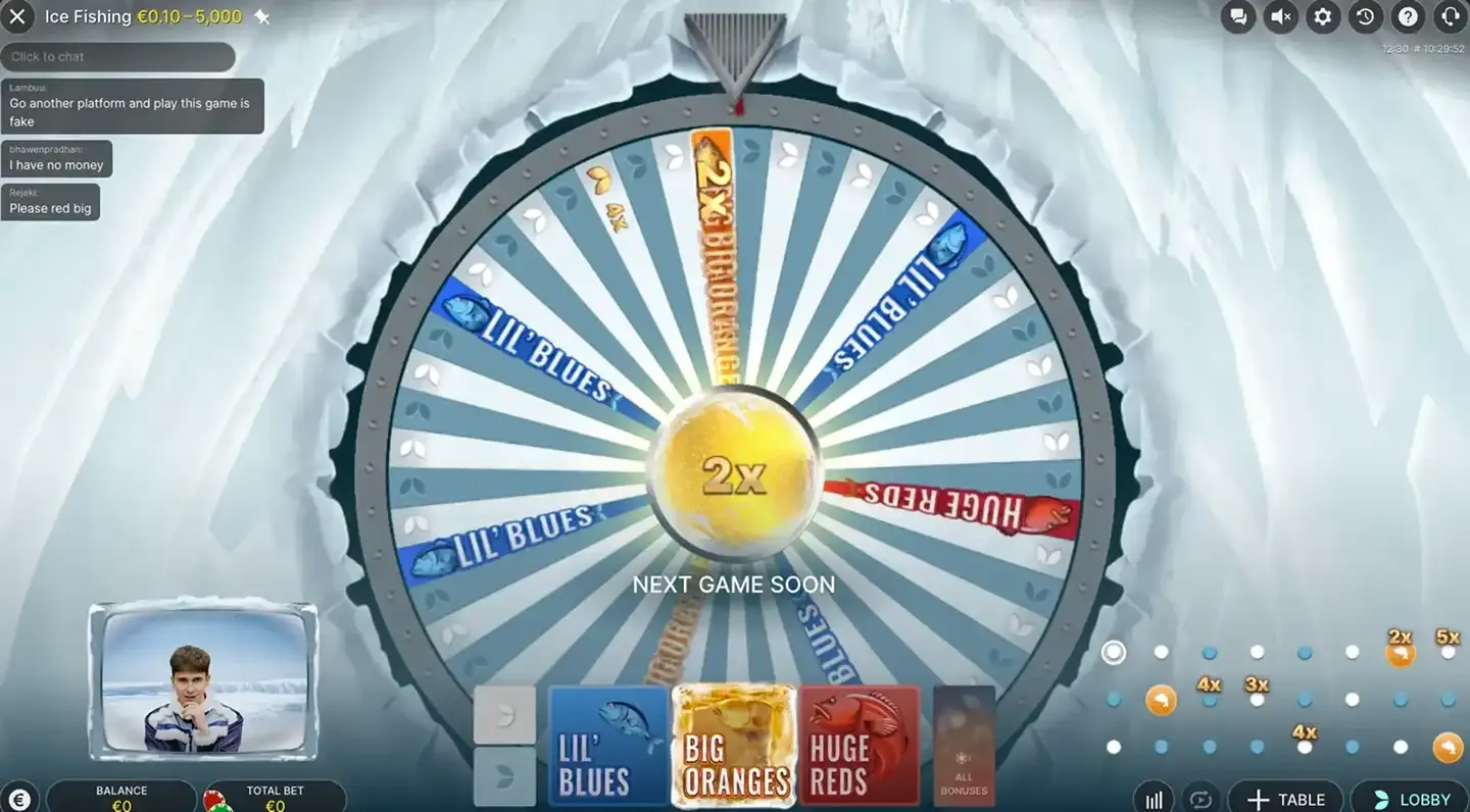 A mecânica principal envolve a seleção de pontos de pesca virtuais, cada um associado a diferentes multiplicadores potenciais. Os participantes escolhem suas posições antes do início da rodada, e os resultados são revelados progressivamente durante a sessão. O jogo Ice Fishing mantém um histórico acessível das últimas rodadas, exibindo padrões de multiplicadores e frequência de resultados.
